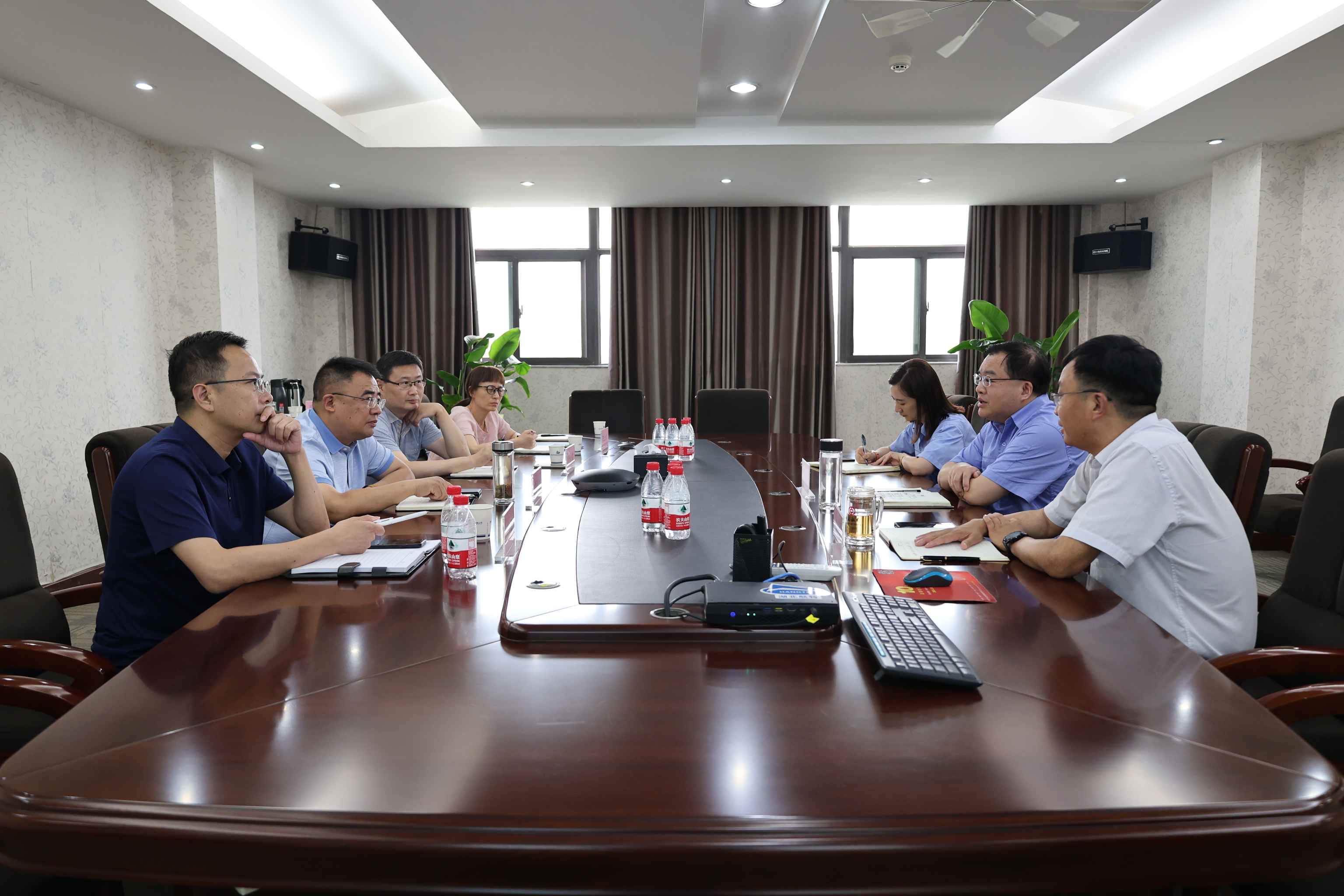 熊小平匯報(bào)了公司上半年經(jīng)營情況,各產(chǎn)業(yè)收入指標(biāo)完成情況以及上市進(jìn)程。陳陽陵就行業(yè)環(huán)境的變化和公司當(dāng)前市場形勢進(jìn)行了解讀,并對市國資委對企業(yè)發(fā)展的關(guān)心表示感謝。