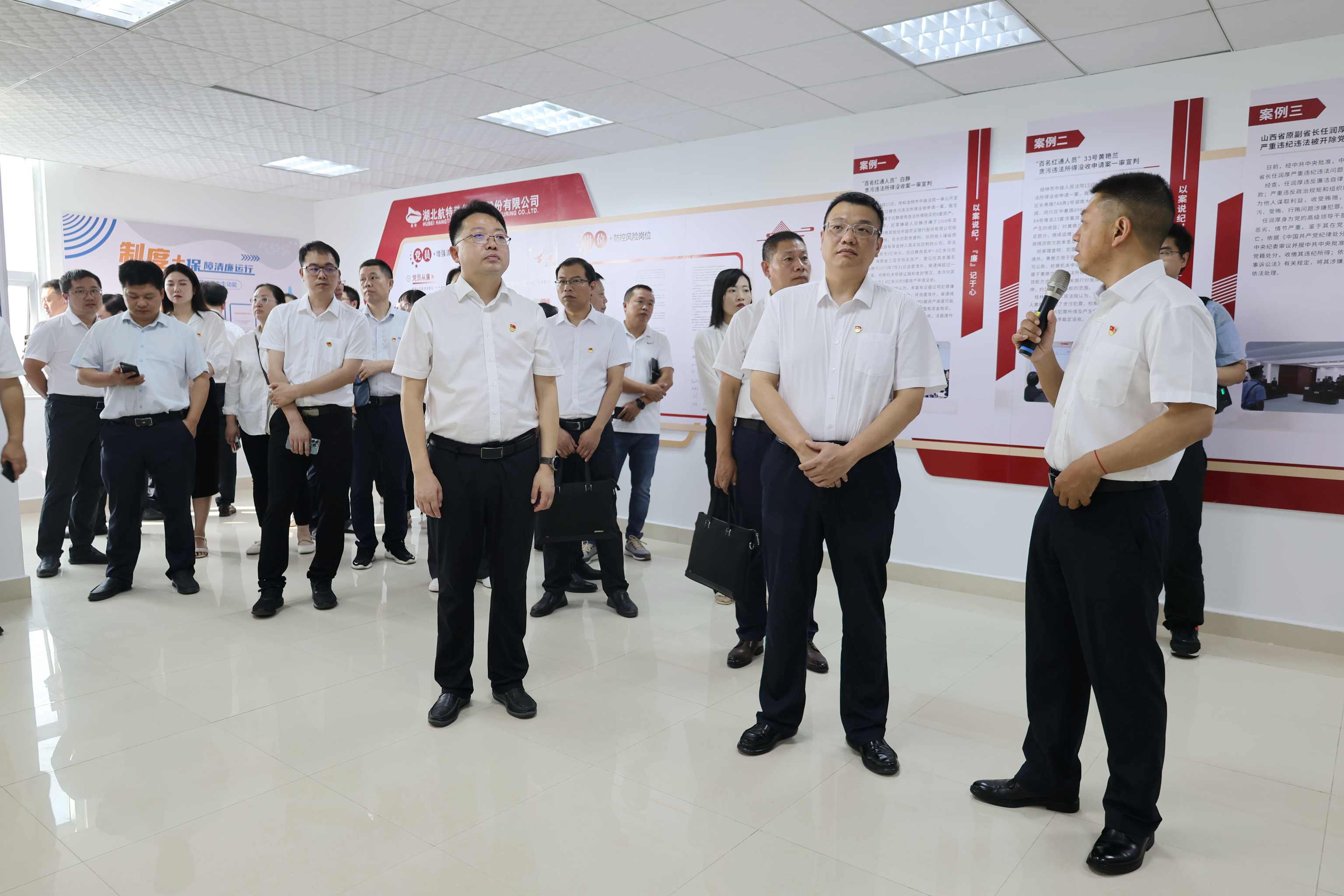 荊門高新區(qū)黨工委副書記、掇刀區(qū)委副書記、區(qū)委政法委書記李鵬,荊門高新區(qū)黨工委委員、紀(jì)工委書記、掇刀區(qū)委常委、紀(jì)委書記、區(qū)監(jiān)委主任王勇,區(qū)直各單位主要負(fù)責(zé)人、區(qū)規(guī)模以上企業(yè)代表觀摩了公司“廉政教育學(xué)習(xí)基地”。